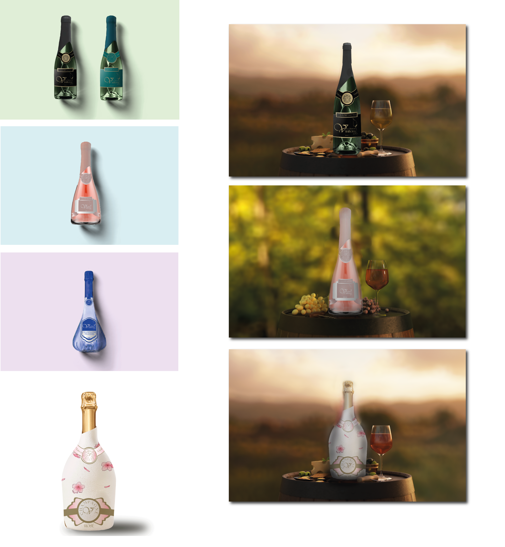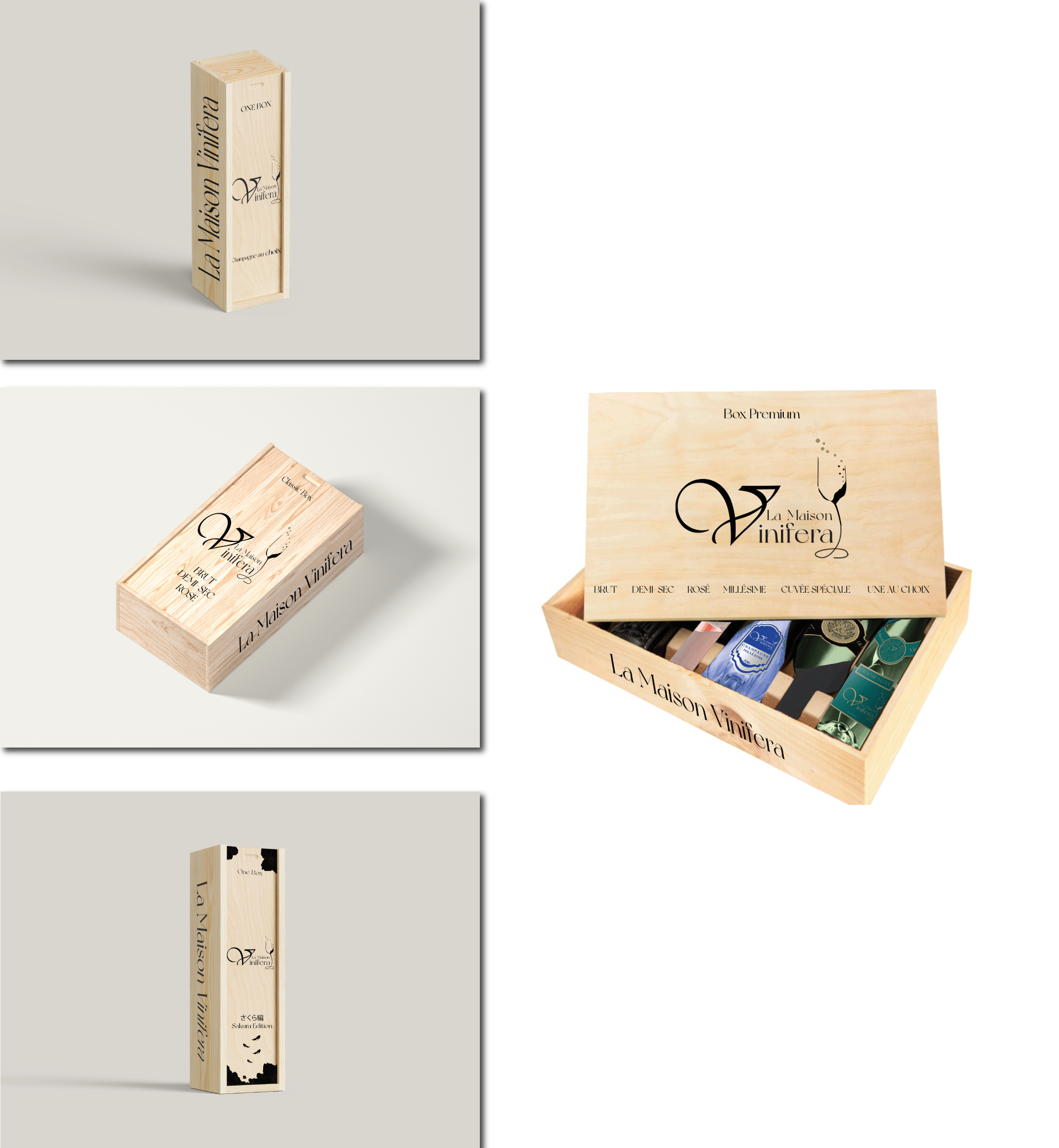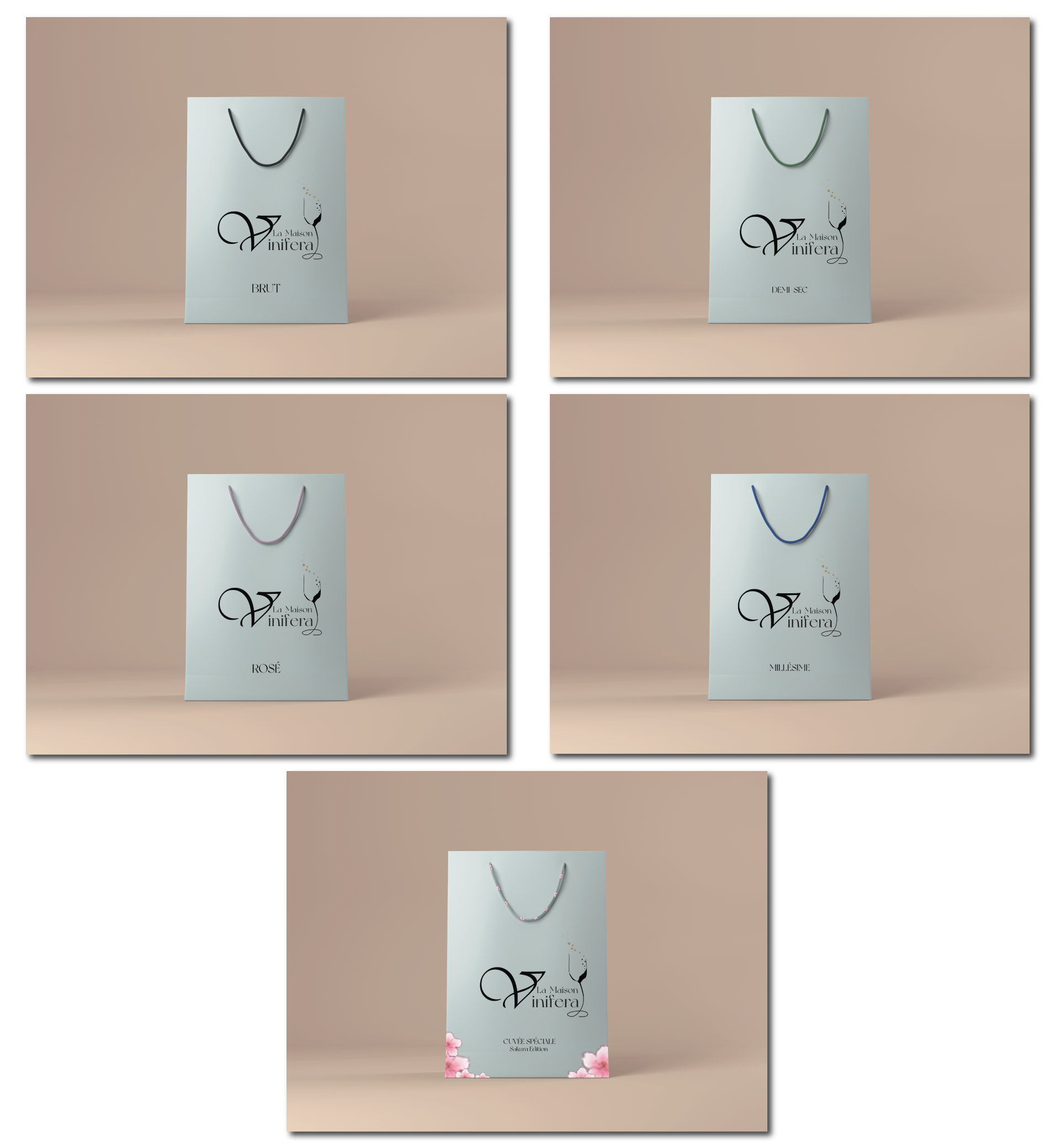 Les Sacs Vinifera, s'assortissent à chaque bouteilles. Les ances sont aux couleurs des bouteilles avec un code couleur (noir pour le brut, vert pour le demi-sec, rose pour le rosé, bleu pour le millésime, et des fleurs pour la Sakura).