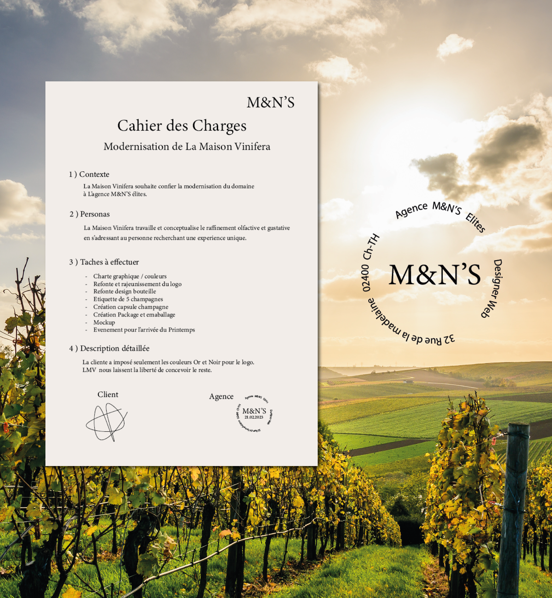 Réalisation d'un projet de conception pour un client vigneron souhaitant moderniser sa charte graphique.